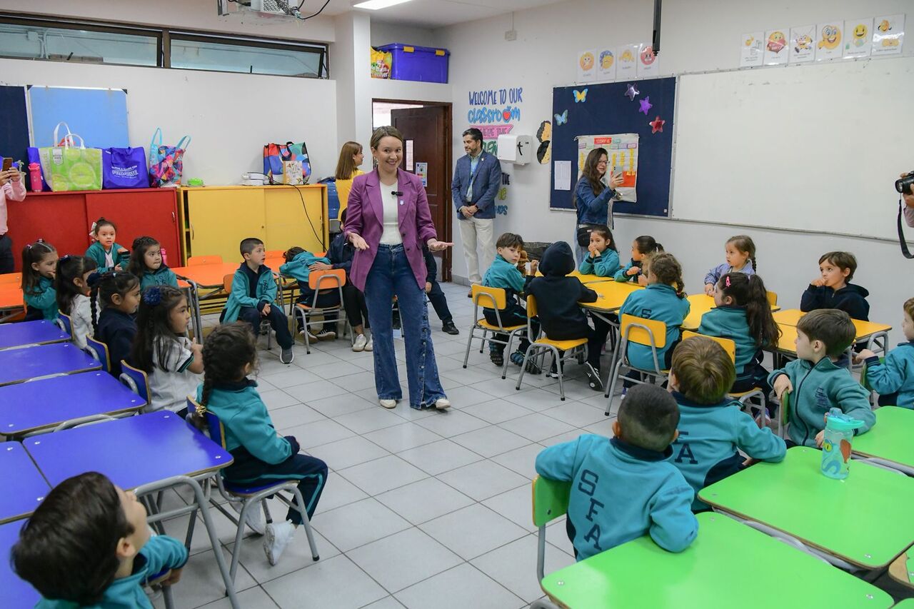 La alcaldesa Catalina San Martín encabezó la bienvenida en el Colegio San Francisco del Alba, donde compartió con estudiantes, docentes y apoderados este importante hito, destacando que “estamos comenzando este año escolar 2026 con mucha energía y con ganas. Estoy convencida de que se viene un tremendo año para ustedes, lleno de desafíos, pero sobre todo de pasarlo bien y aprender, que es fundamental”.