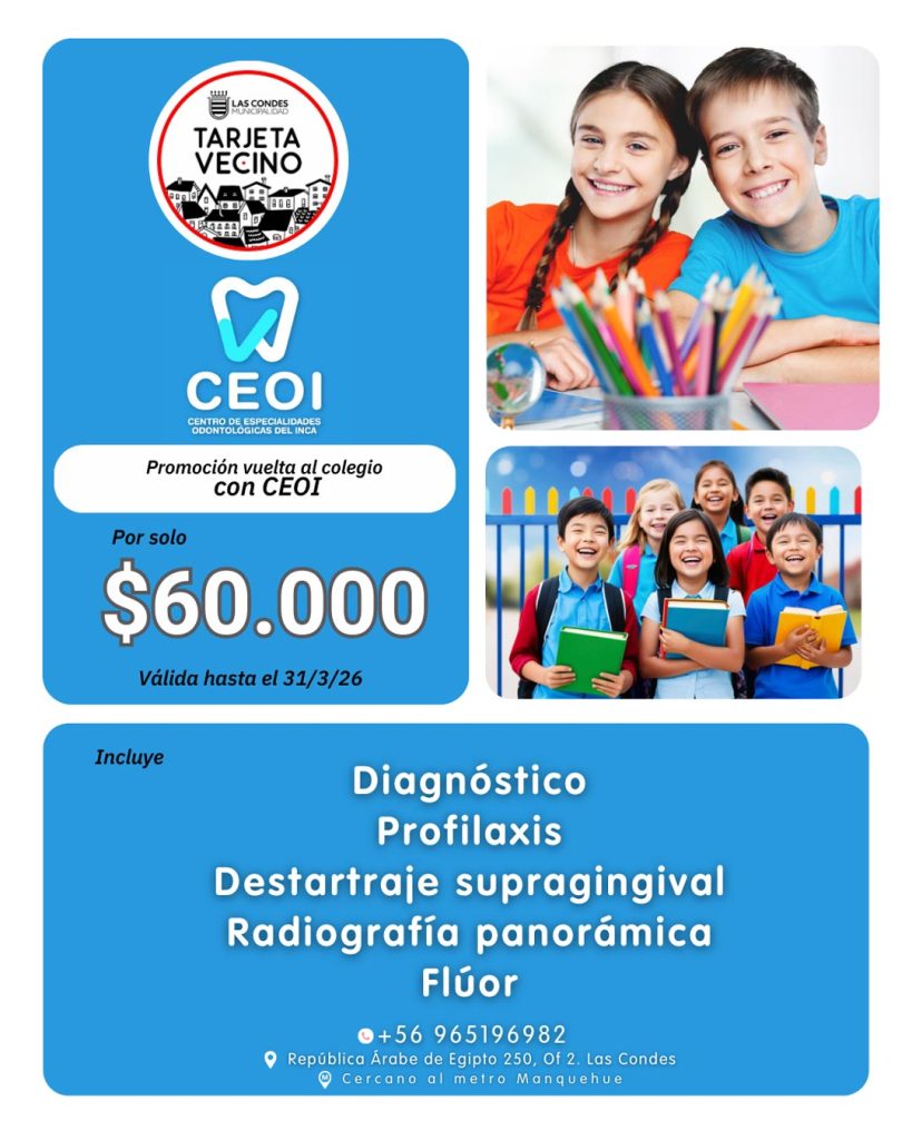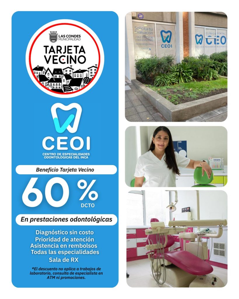 - 60% de descuento en todas las prestaciones (no incluye laboratorio) en relación con el arancel establecido por Clinica CEOI.