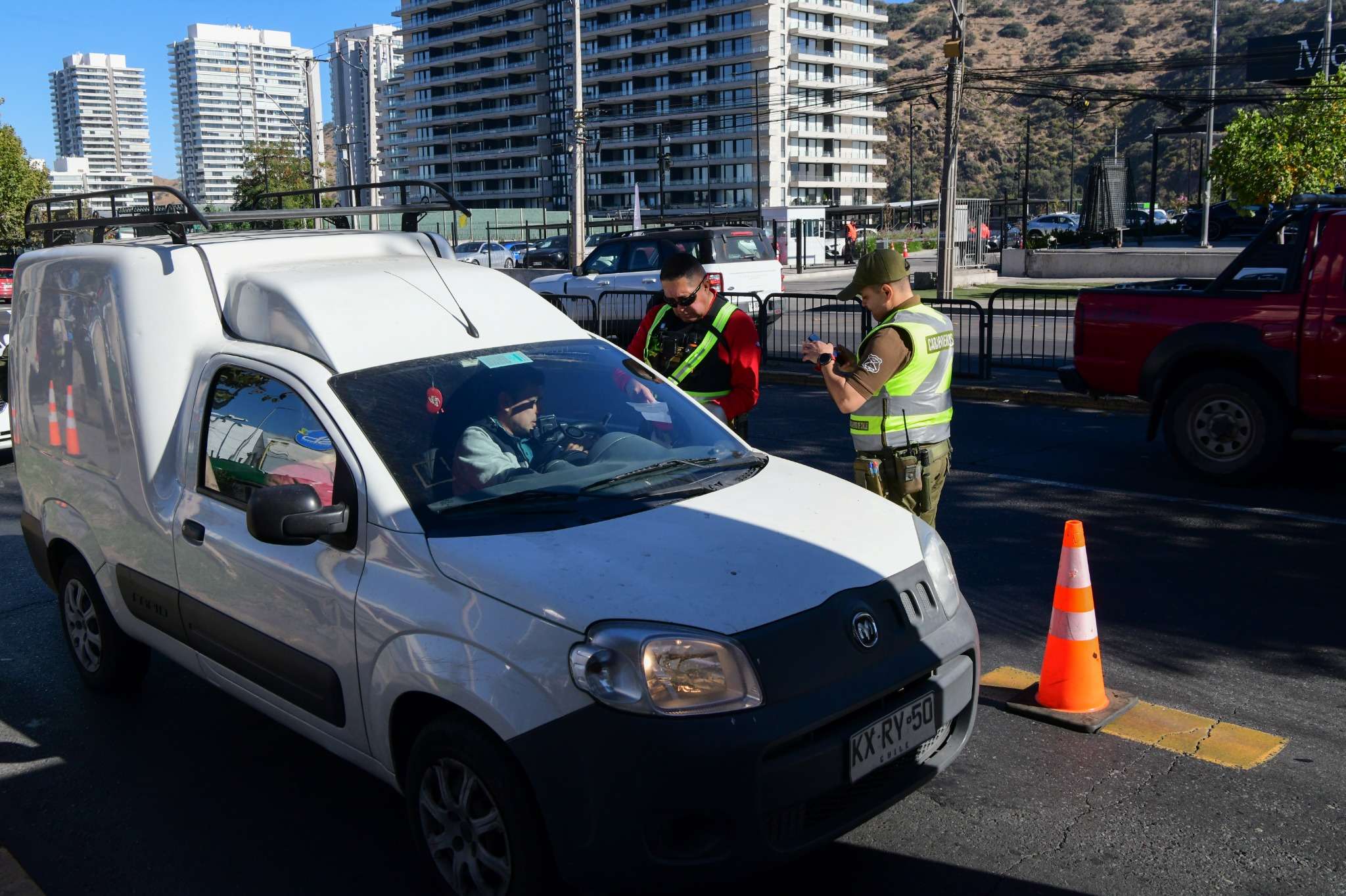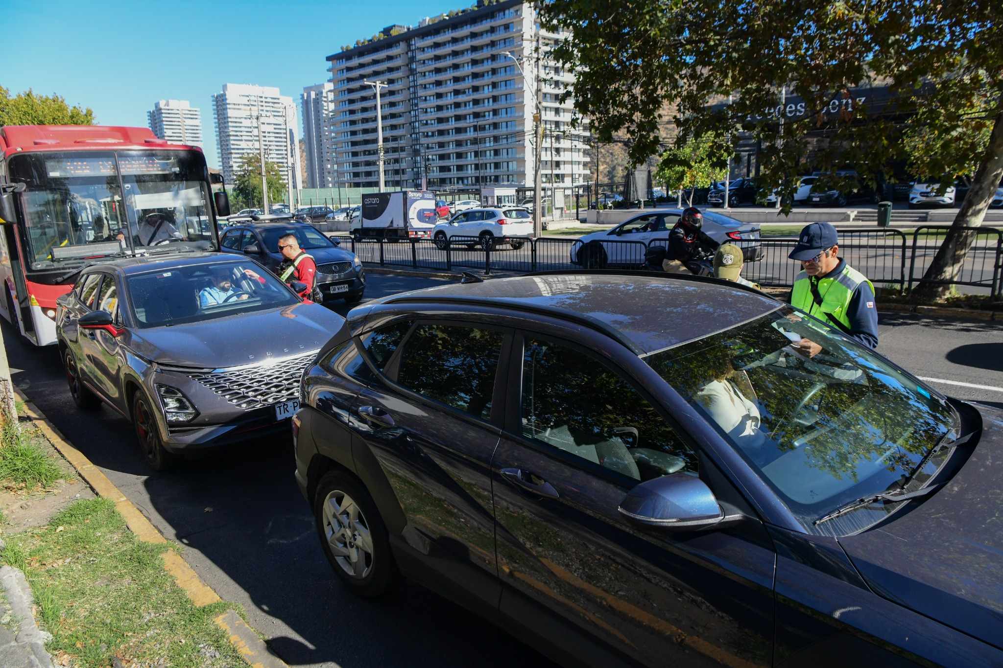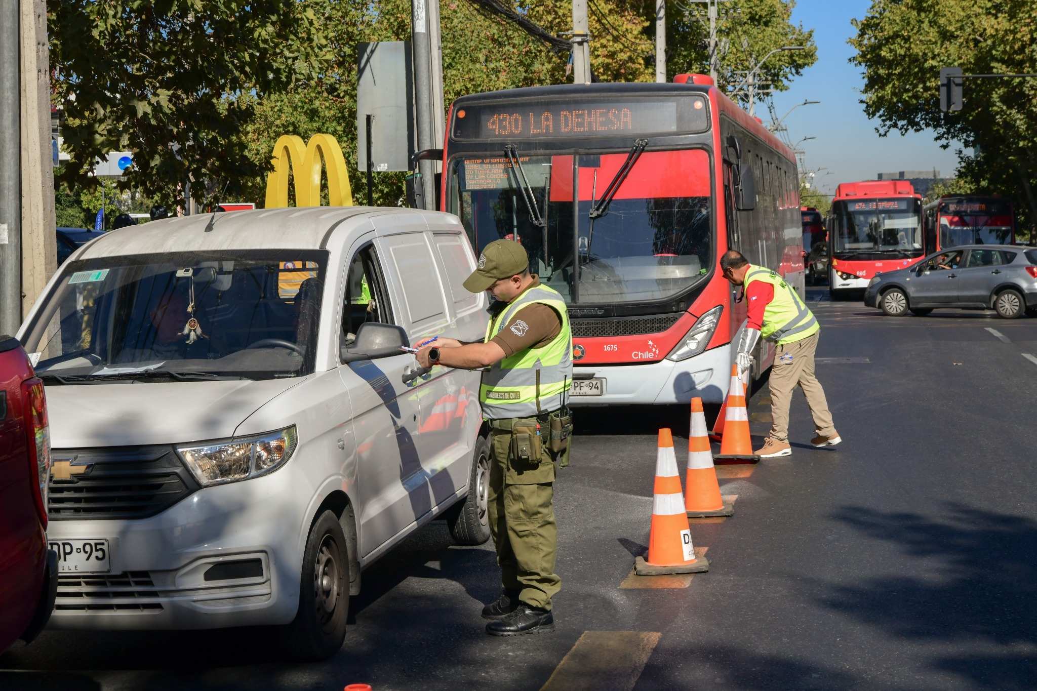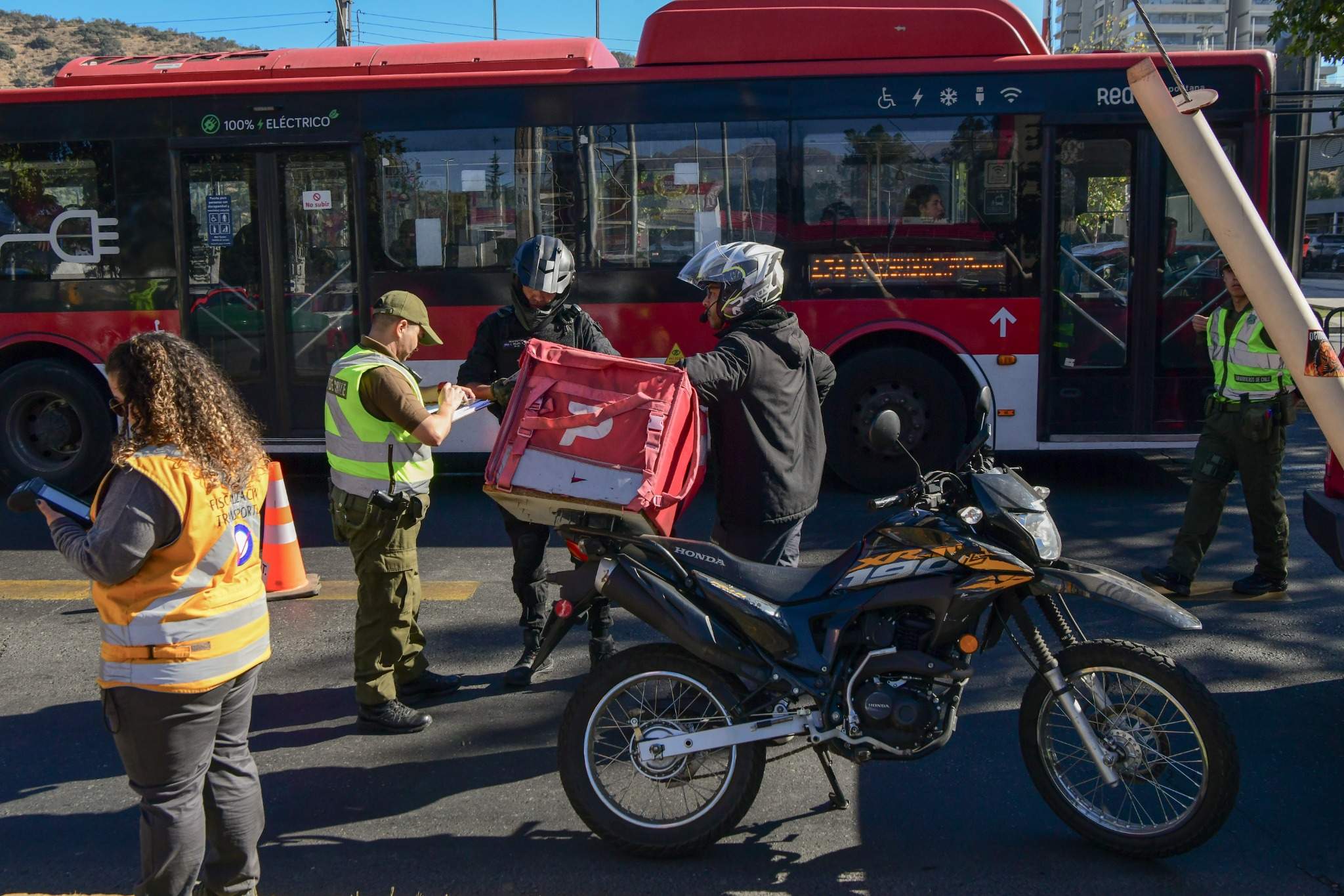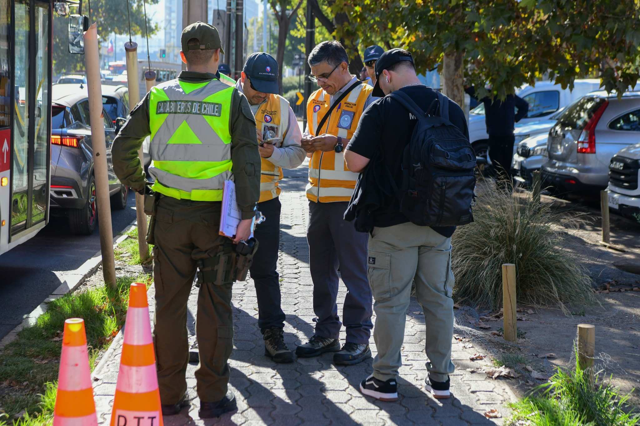 Durante esta jornada, la Dirección de Tránsito de Las Condes coordinó un servicio conjunto de fiscalización en el sector de Cantagallo, con la participación de Carabineros de Chile, a través de la 47ª Comisaría, el Ministerio de Transportes mediante su Sección Evasión, Seguridad Pública y el equipo de Inspección de Tránsito. En total, se realizaron 48 controles: 16 a buses Red, 6 a motos y 26 a vehículos particulares, además de la fiscalización de 270 pasajeros de la locomoción colectiva.