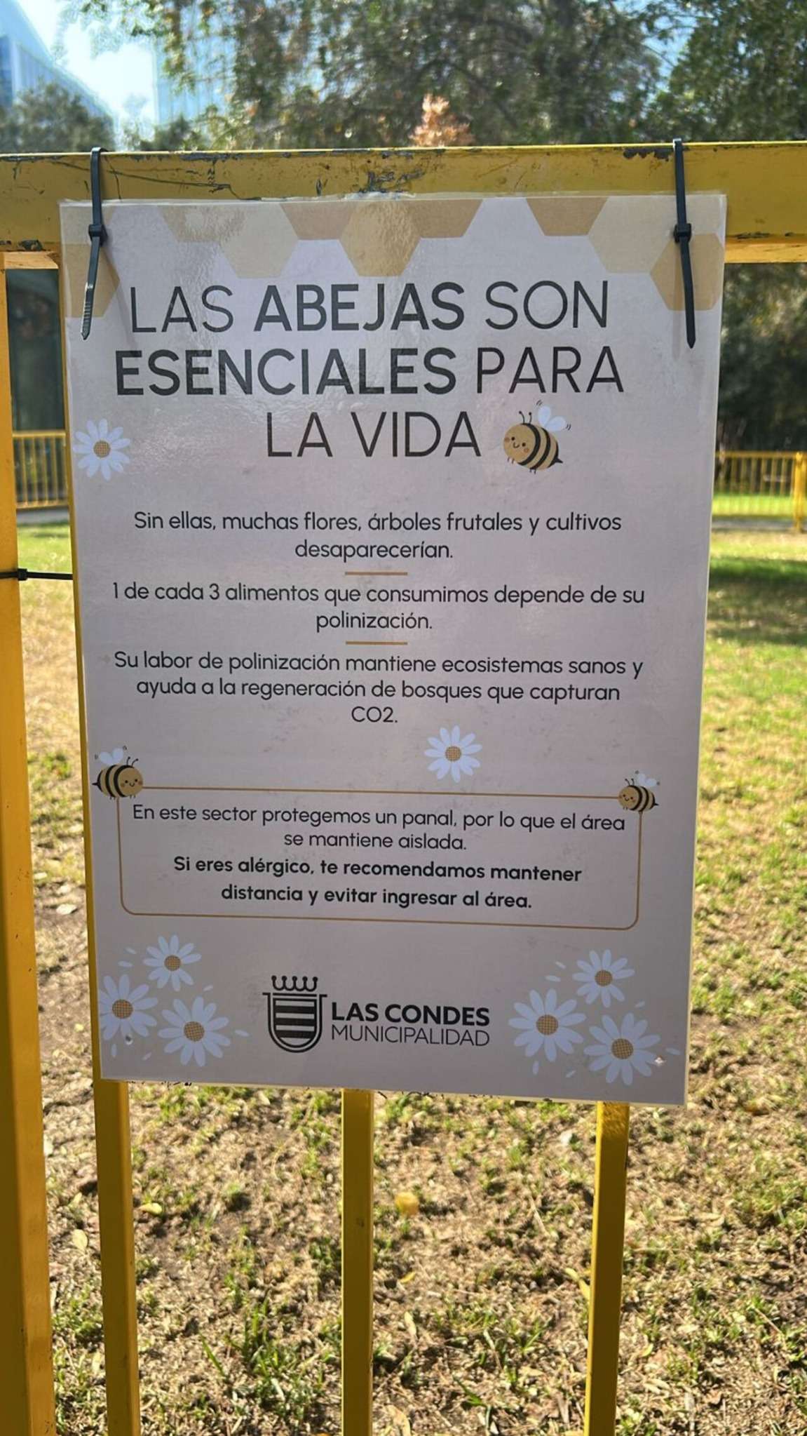 Pero esta realidad también la tenemos acá en Las Condes. Desde hace algunas semanas que un espacio del Parque Araucano se encuentra cercado luego de detectarse la presencia de un gran panal en un quillay, especie nativa chilena.