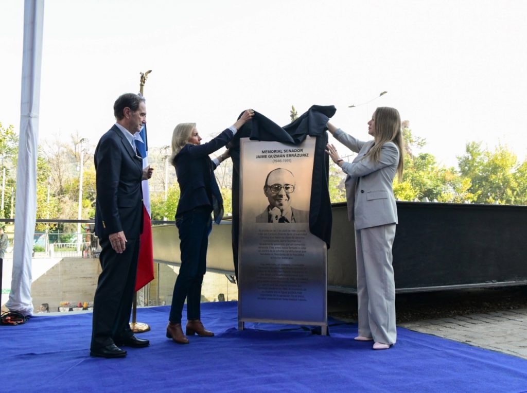 La alcaldesa de Las Condes, Catalina San Martín, junto al presidente de la Fundación Jaime Guzmán, Hernán Larraín, encabezaron una ceremonia solemne para conmemorar los 35 años del atentado contra el ex senador y académico Jaime Guzmán Errázuriz (1946–1991), ocurrido en democracia.