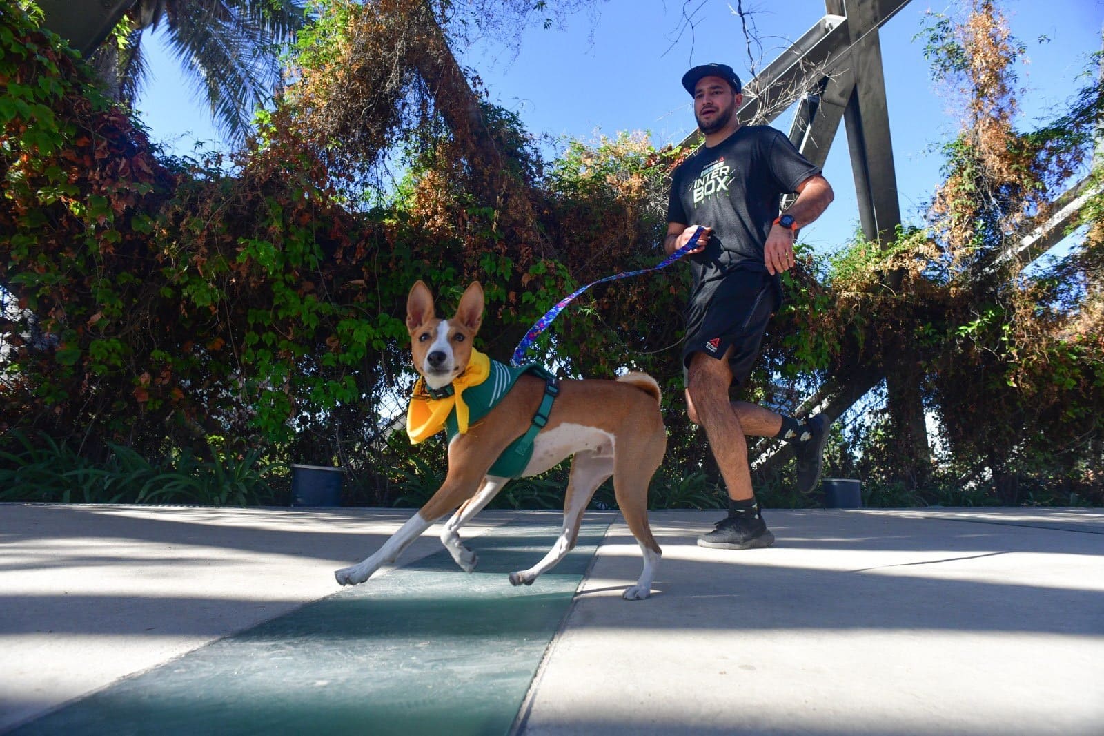 - Durante toda la carrera, el perro debe llevar arnés y correa y en todo momento (no se permite collar de ahorque), para garantizar la seguridad de los asistentes.