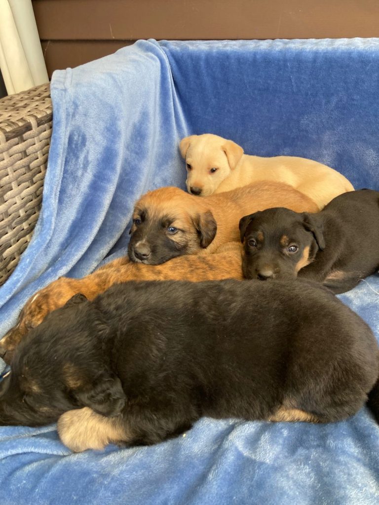 Todos niños rescatados con su madre. Tienen mes y medio. Serán medianos de adultos, no pequeños. Solo familias realmente comprometidas