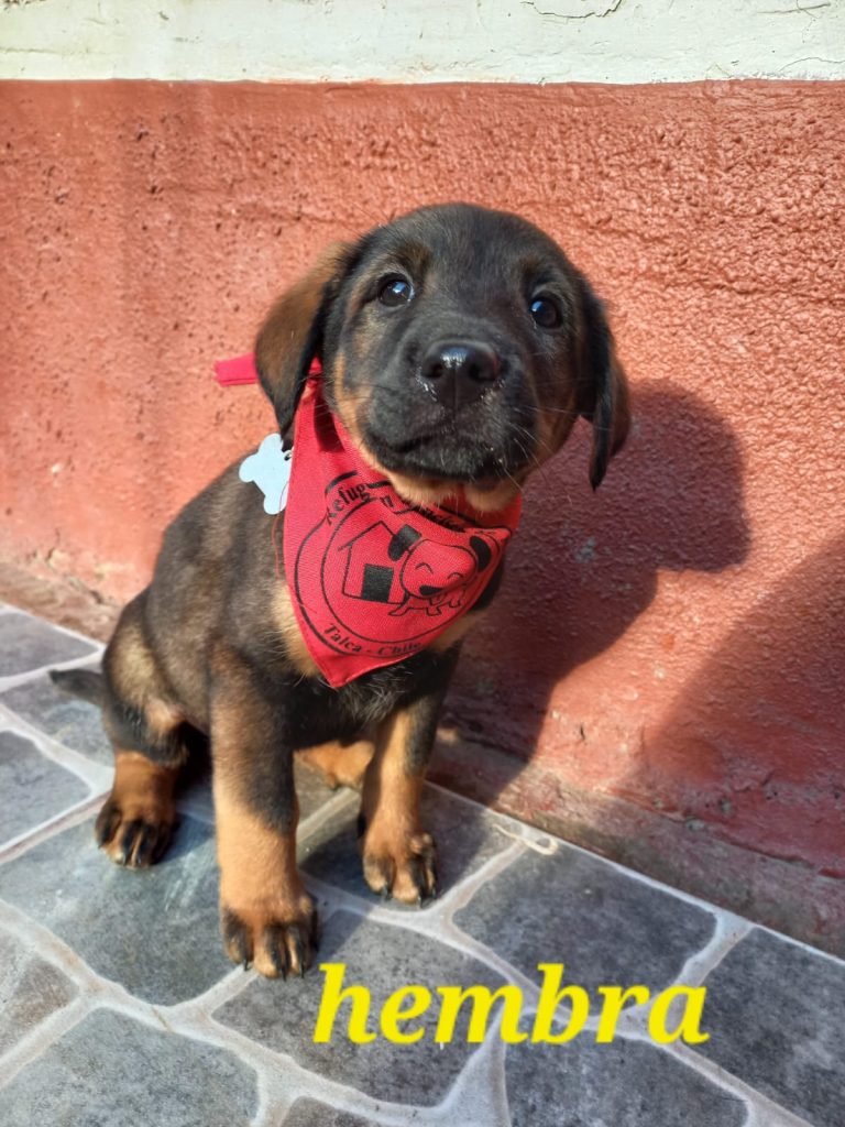 Carlita es una dulce perrita de dos meses y medio rescatada junto a sus hermanitos. Será tamaño mediano de adulta, ya tiene su primera vacuna. Solo familias responsables en sus cuidados para toda la vida