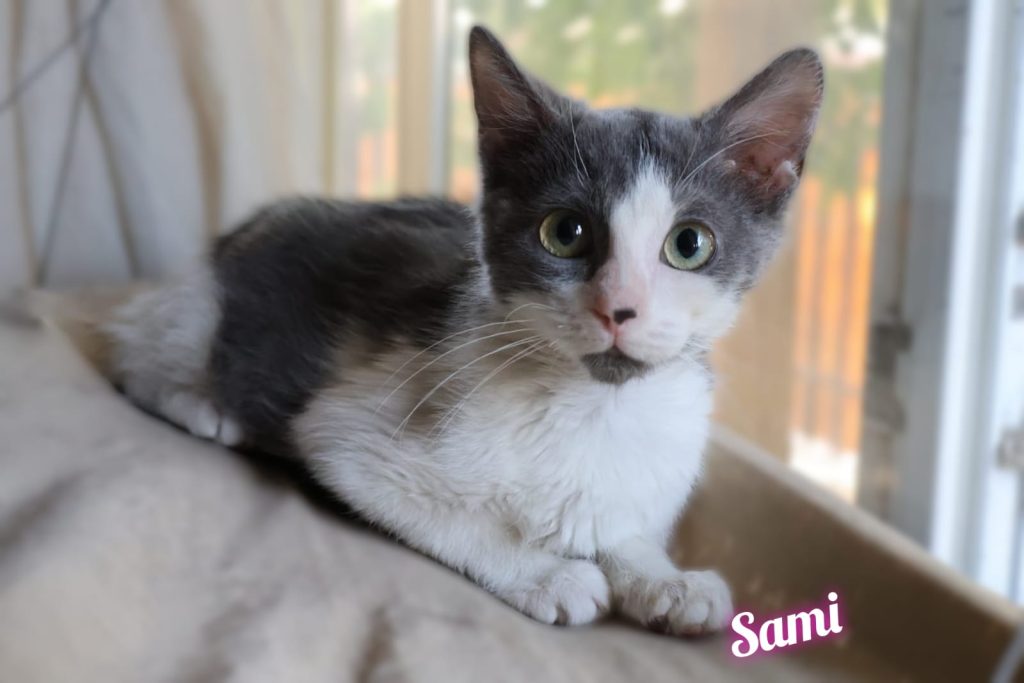 Sami es una gatita hembra de 4 meses muuuy cariñosa y regalona. Tiene una guatita muy tierna, está sanita desparasitada interna y externamente