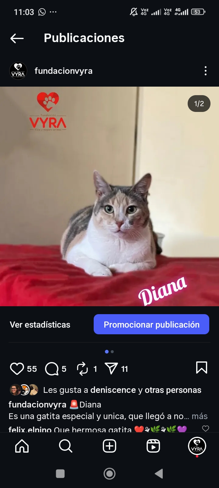 Hembra Pequeño🚨Diana Es una gatita especial y unica, que llegó a nosotros con sus bebés en búsqueda de ayuda para salvarlos a ellos. Todos lograron salir...