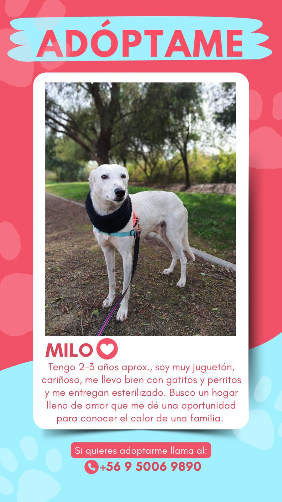 Macho GrandeMilito fue encontrado en Santa Elena Colina, estaba muy asustado, con un collar que apenas lo dejaba respirar. En un mestizo de galgo, tranquilo, se...