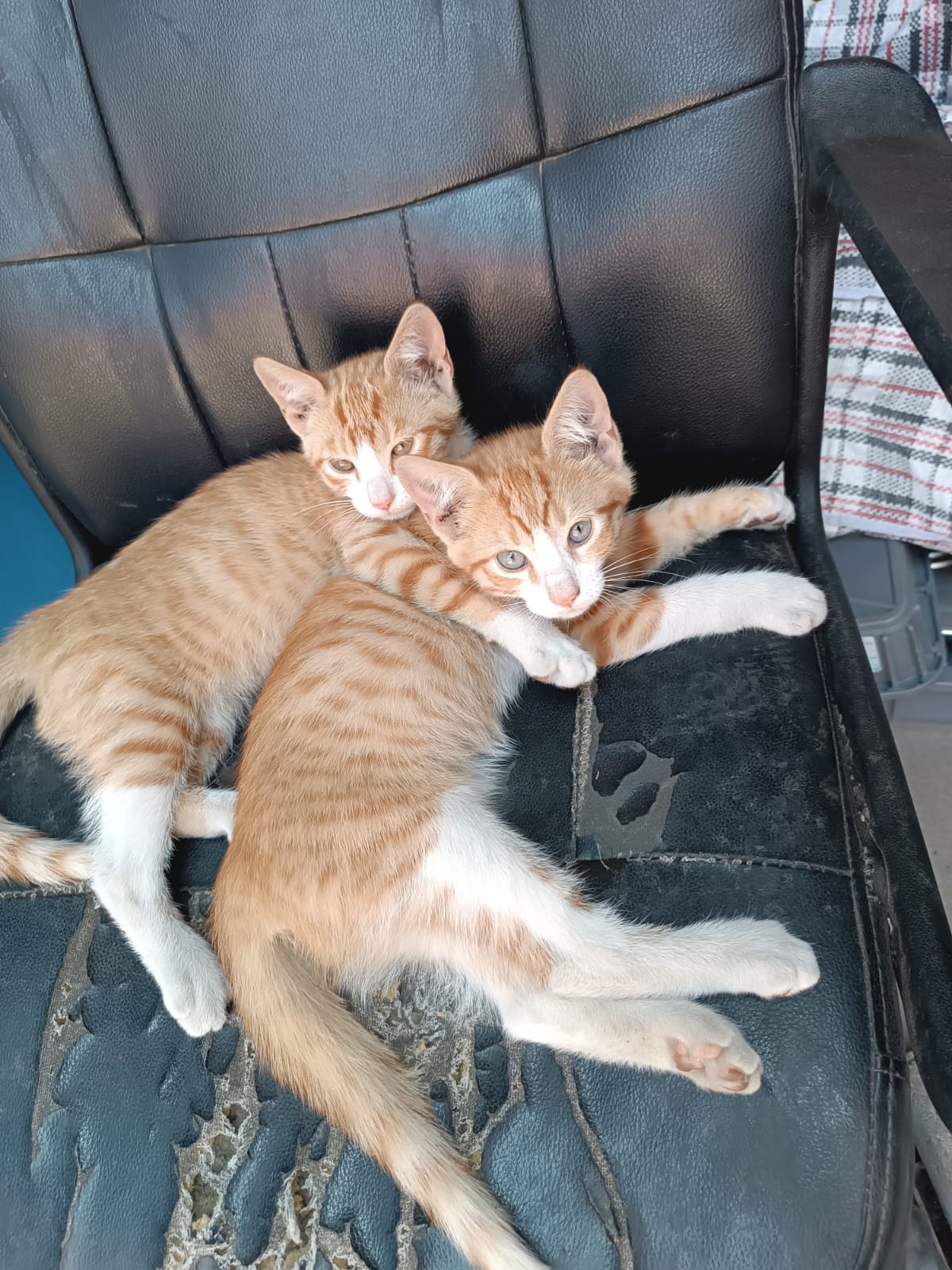 Macho PequeñoRingo y Paul tienen casi 3 meses, son muy tiernos y juguetones, ya tienen su primera vacuna triple felina y están desparasitados, usan su arenero....