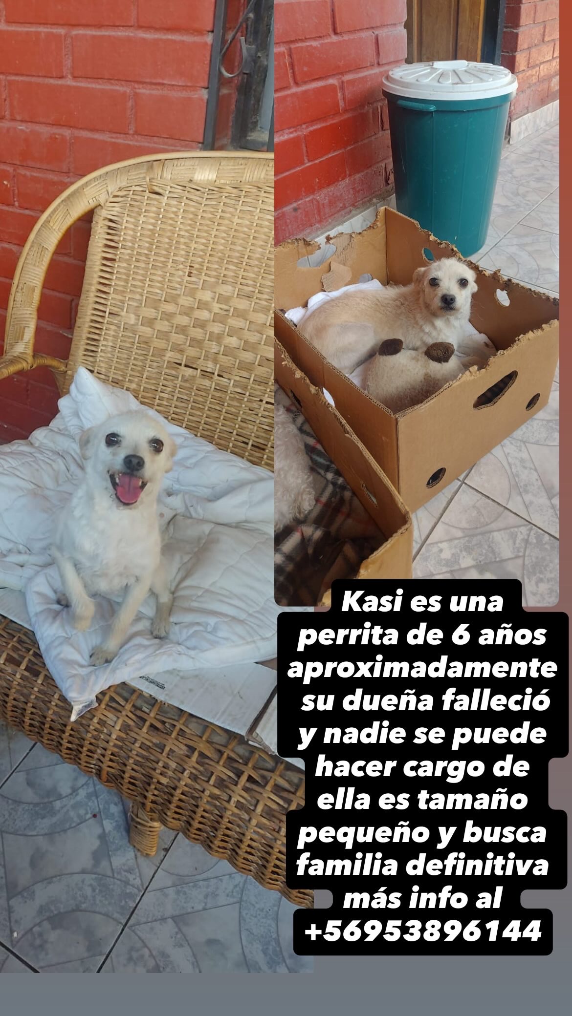 Hembra PequeñoKasi es una perrita de 6 años aproximadamente su dueña falleció y nadie se puede hacer cargo de ella es tamaño pequeño y busca familia...