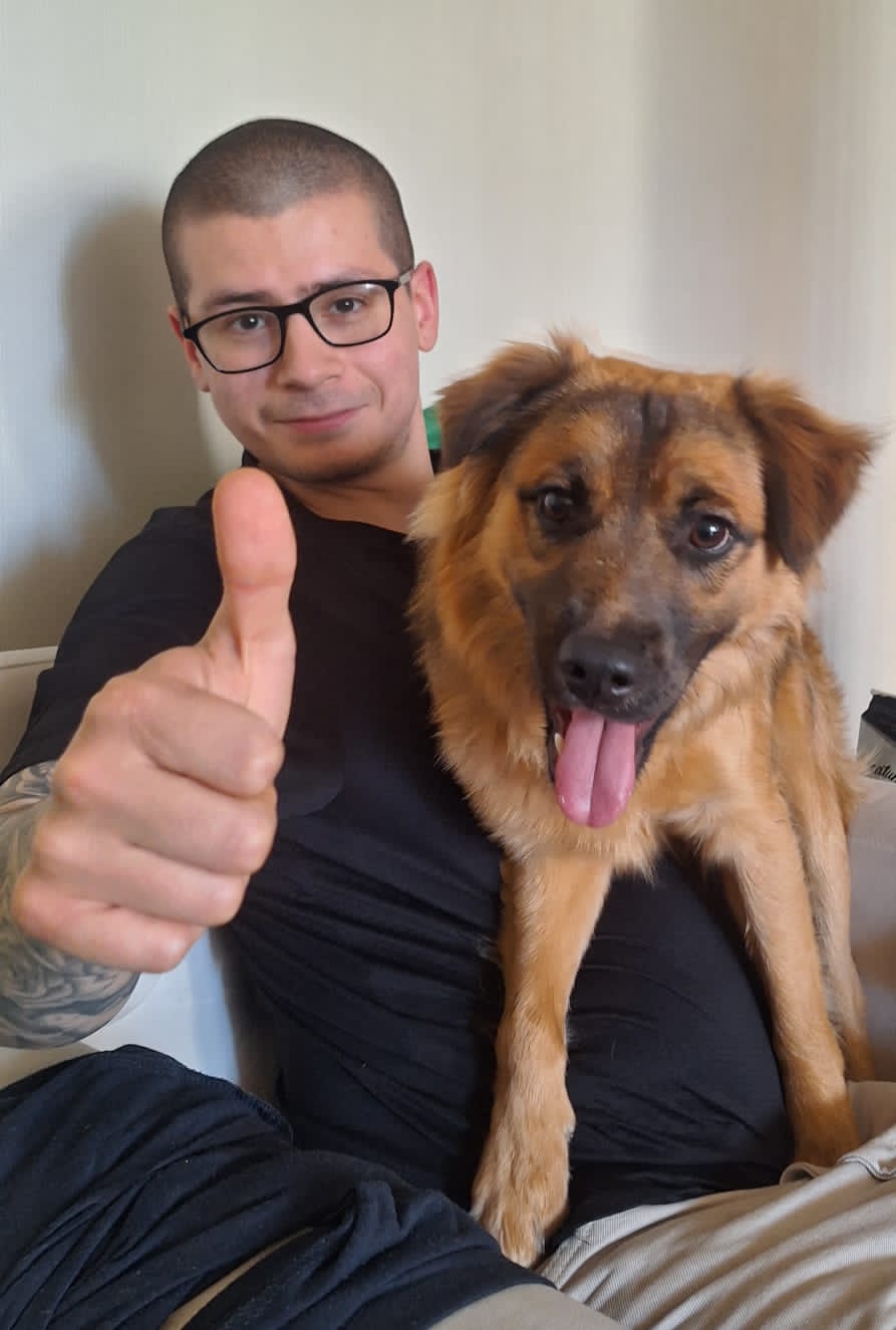 Macho Medianoa ver biografía: lo encontraron con 7 meses en la u y una organización de la u lo recogió, lo desparasitó y le puso sus vacunas y desde ahi...
