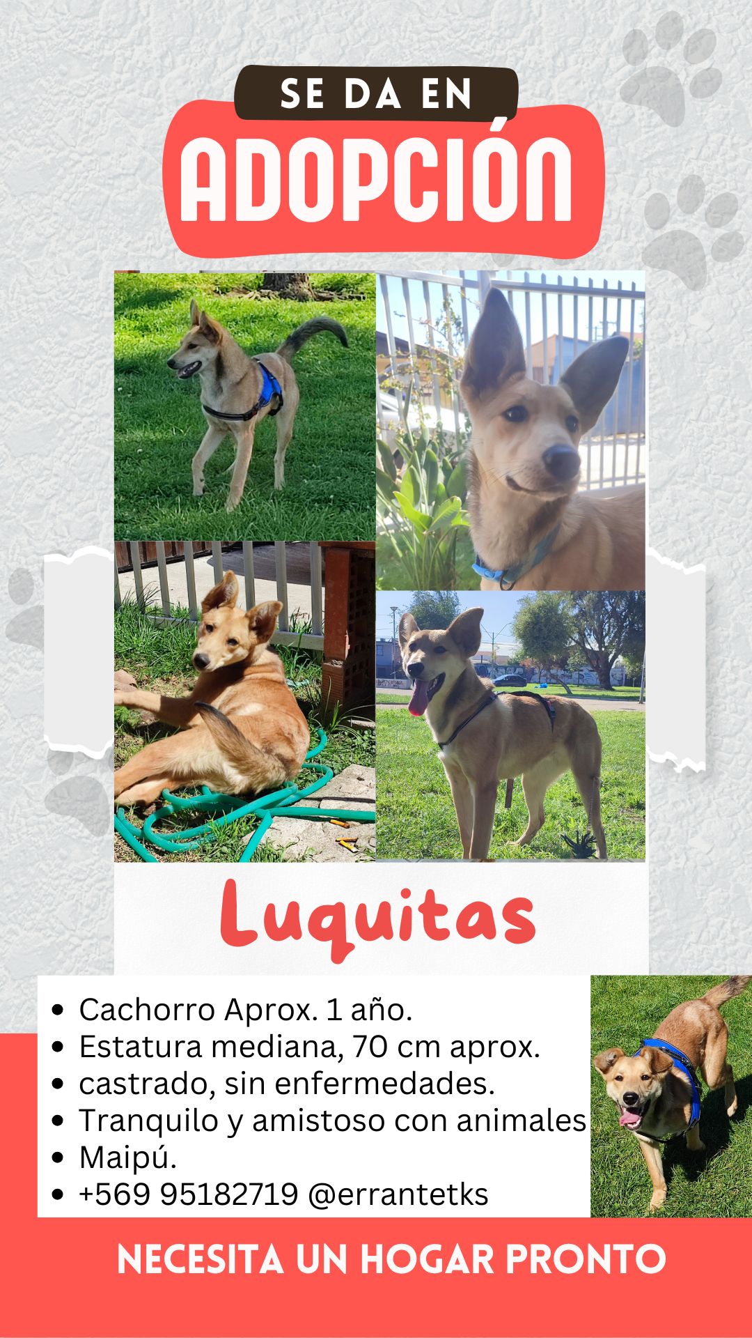 Macho MedianoSe busca hogar definitivo para luquitas, es un cachorrito muy amoroso, amistoso y juguetón. Es muy inteligente hace caso a las indicaciones que se...
